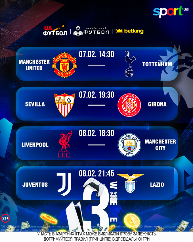 - Ліверпуль – Манчестер Сіті (08.02. 18:30)