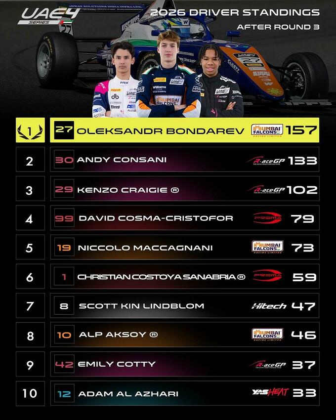 Відбувся третій етап сезону Формули-4 Близького Сходу (UAE F4), у якому взяв участь український пілот Олександр Бондарев, що виступає у складі команди Mumbai Falcons.