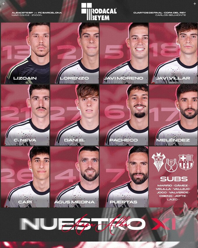 У вівторок, 3 лютого 2026 року, відбудеться матч чвертьфіналу кубка Іспанії між «Альбасете» і «Барселоною».