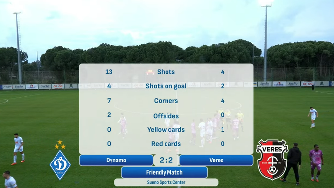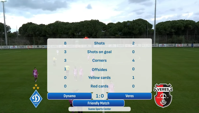 У четвер, 5-го лютого, відбудеться товариський поєдинок, у якому змагатимуться київське «Динамо» та рівненський «Верес». Матч пройде в Белеку, на полі стадіону Sueno Sport Center, початок о 16:00.