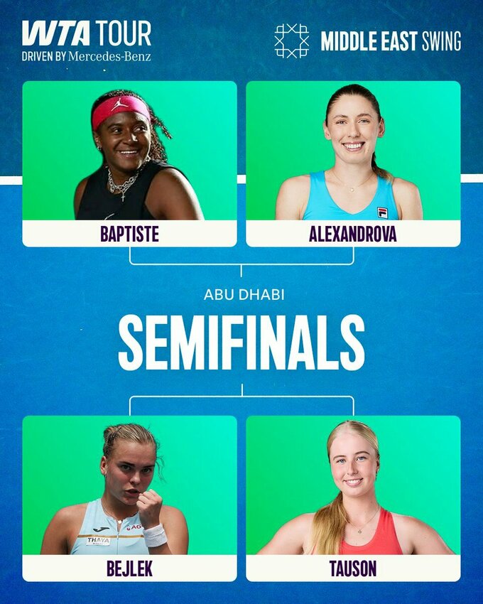 Визначено півфінальні пари турніру WTA 500 в Абу-Дабі