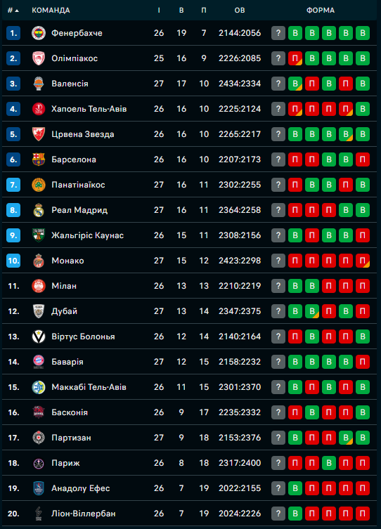 Євроліга. Регулярний чемпіонат. 27-й тур, 5 лютого