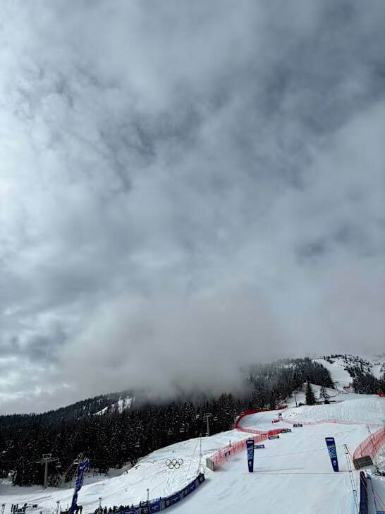 6 лютого пройшло перше офіційне тренування жінок з гірськолижного спорту на Олімпійських іграх 2026. Сесія, яка була запланована на 5 лютого, була скасована через погодні умови.