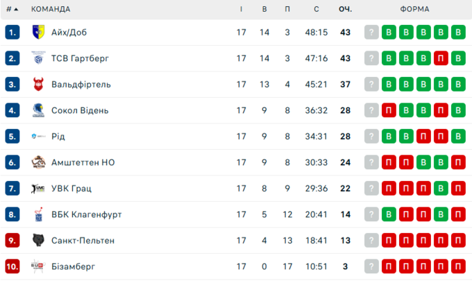Ще один поєдинок 17-го туру відбувся між лідерами таблиці – «Айх/Доб» та «Амштеттеном», за який виступає Руслан Осипенко.