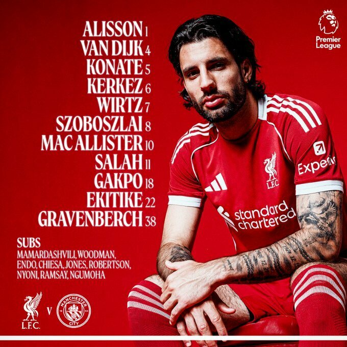 Ліверпуль: Аліссон, ван Дейк, Конате, Керкез, Вірц, Собослаї, Макаллістер, Салах, Гакпо, Екітіке, Гравенберх