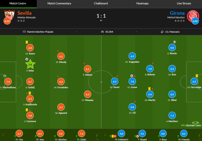 Оцінки за матч «Севілья» – «Жирона»: