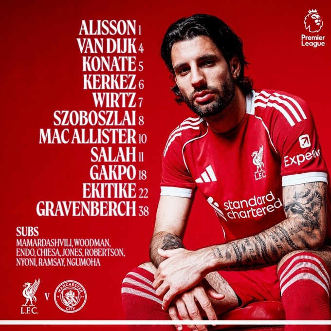 «Ліверпуль»: Аліссон – Керкез, ван Дейк, Конате, Собослаї – Гравенберх, Мак Аллістер – Гакпо, Вірц, Салах – Екітіке.