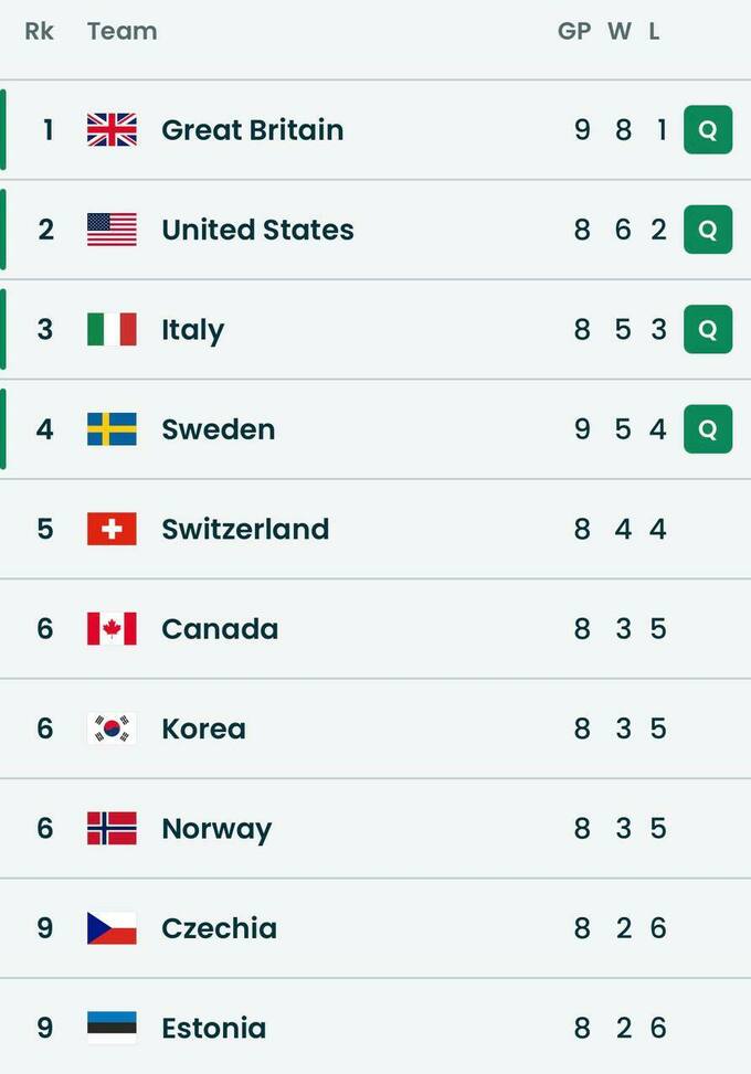 У 11-й сесії британці мінімально поступилися Швейцарії (6:7), однак у наступному матчі швидко реабілітувалися, перегравши Італію (9:6).
