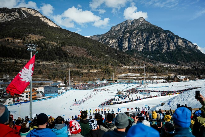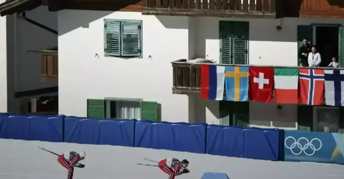 Під час змагань зі скіатлону на Олімпійських іграх-2026 поряд з трасою в італійському Тезеро було помічено російський прапор, повідомляють пропагандистські змі.