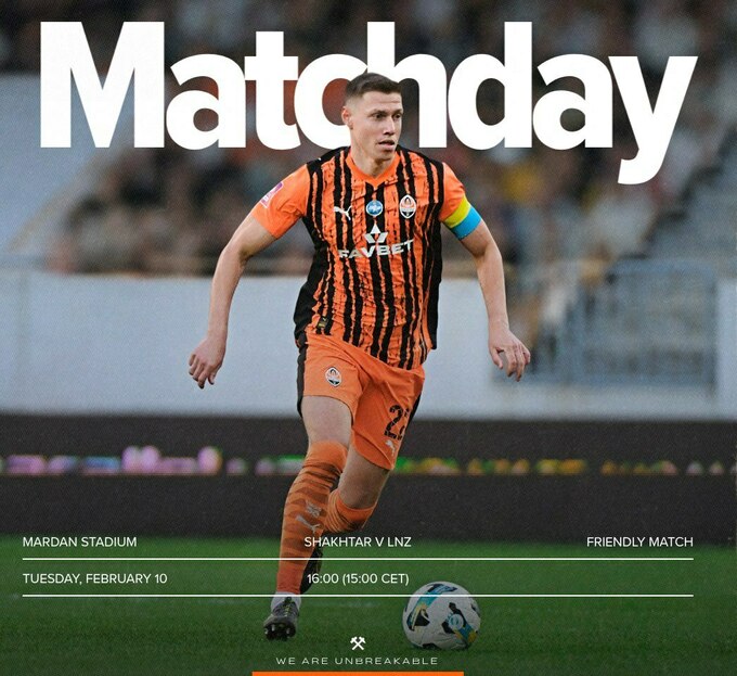 10 лютого о 16:00 відбудеться товариський матч лідерів УПЛ на зборах у Туреччині