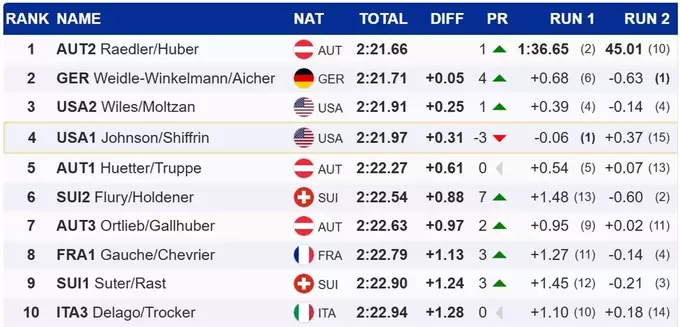 Австрійки Катаріна Хубер та Аріане Редлер завоювали золото в Італії
