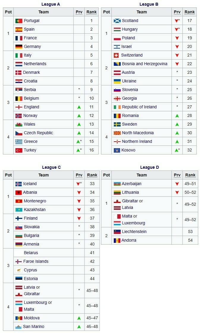 Ліги націй УЄФА 2026/27. Кошики для жеребкування