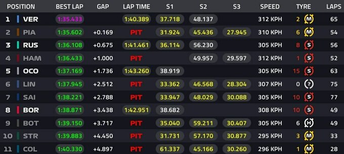 Чотириразовий чемпіон світу показав час 1:35.433, випередивши Оскара Піастрі з Макларен менш ніж на дві десяті секунди.