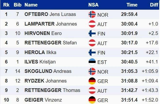 Срібним призером став австрієць Йоханнес Лампартер, третій – Еро Хірвонен з Фінляндії.