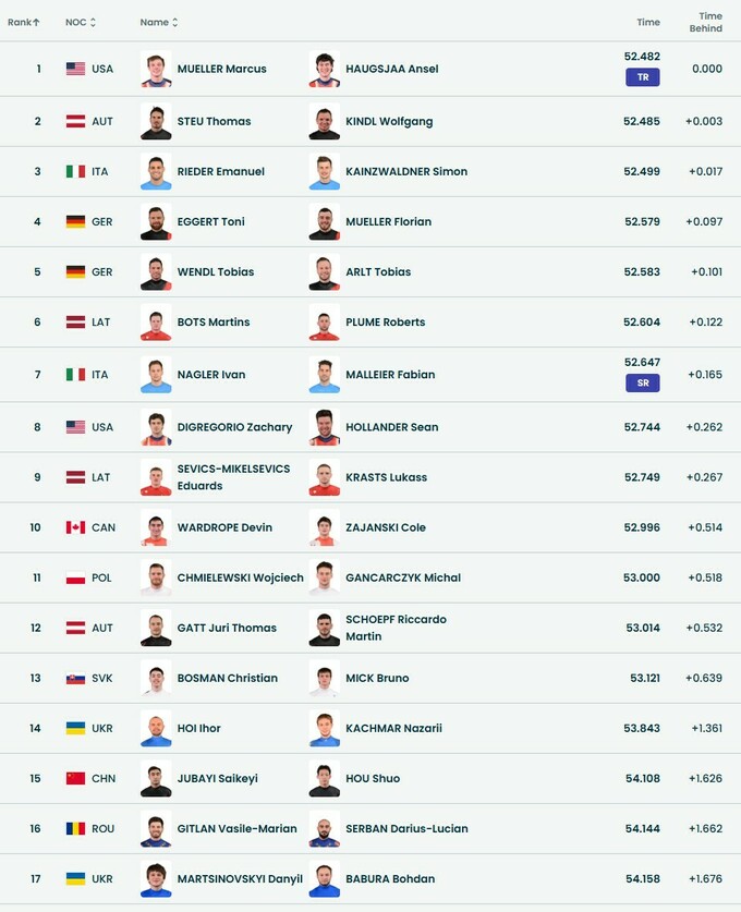 - 3. Емануеле Рідер / Сімон Кайнцвальднер (Італія) – 52.499 (+0.017)