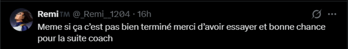 Remi: Навіть якщо це закінчилося не дуже добре, дякую за спробу, і удачі в майбутньому, тренере.