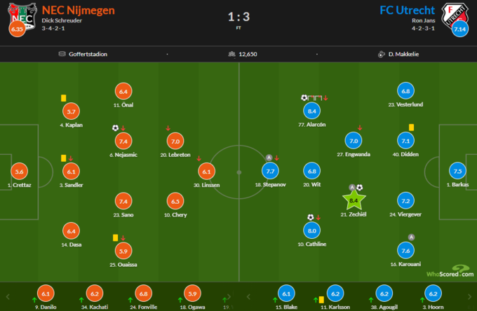 Оцінки гравців за матч НЕК Неймеген – Утрехт: