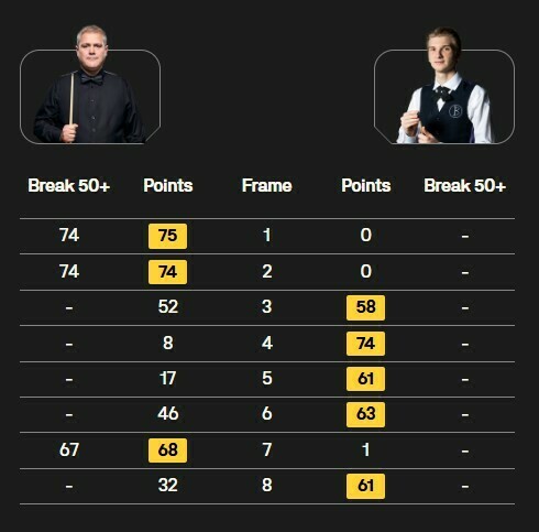 Програвши два кадри на старті, Бойко переломив хід гри та взяв 4 партії поспіль (4:2). Після цього Мілкінс скоротив відставання (3:4), але Юліан поставив крапку в матчі (5:3).