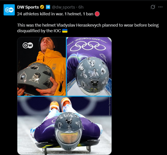 DW Sports: 24 спортсмени загинули на війні. 1 шолом. 1 дискваліфікація. Це був шолом, який Владислав Гераскевич планував вдягнути до того, як був дискваліфікований МОК.