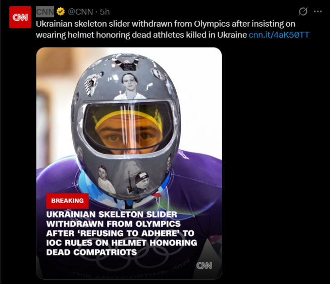CNN: Українського скелетоніста зняли з Олімпіади після того, як він наполягав на носінні шолома на честь загиблих спортсменів в Україні.