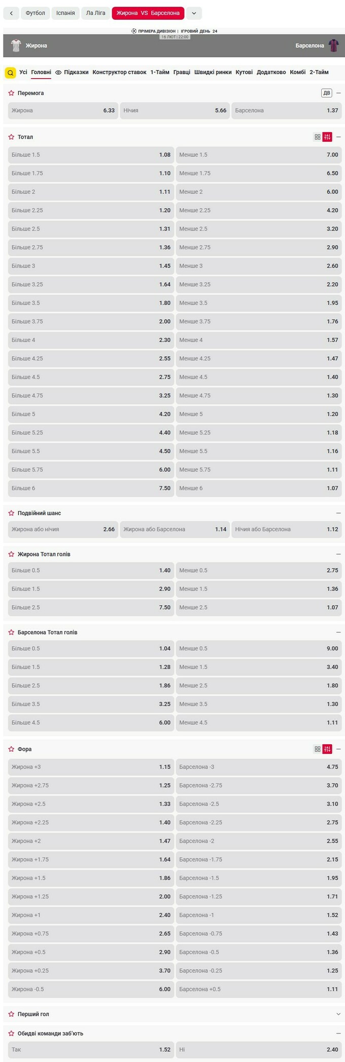Лінія та коефіцієнти на матч Жирона – Барселона