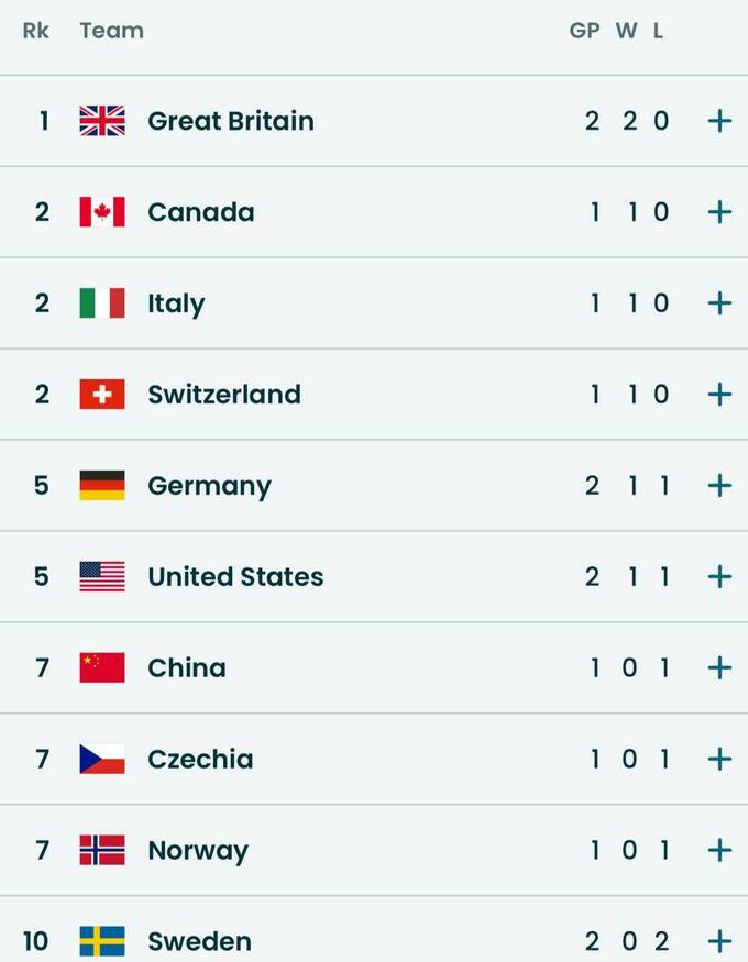 Турнірну таблицю серед жінок очолила Швеція, яка оформила дві поспіль перемоги.