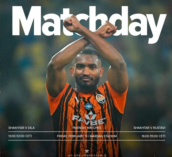 13 лютого о 13:00 зустрічаються Шахтар Донецьк та грузинська команда Діла Горі.