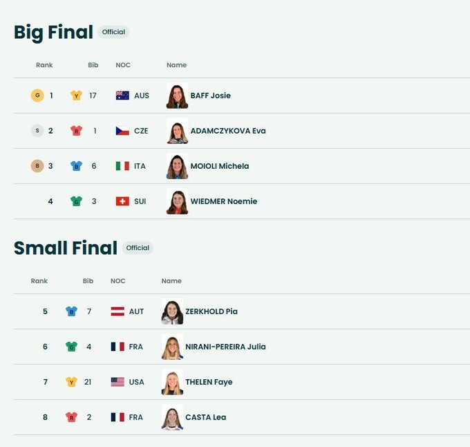 У малому фіналі за 5–8 місця перемогла Пія Церхольд (Австрія). Шостою стала француженка Жулія Нірані-Перейра, сьомою – Фей Телен зі США, а восьме місце посіла ще одна представниця Франції Леа Каста.