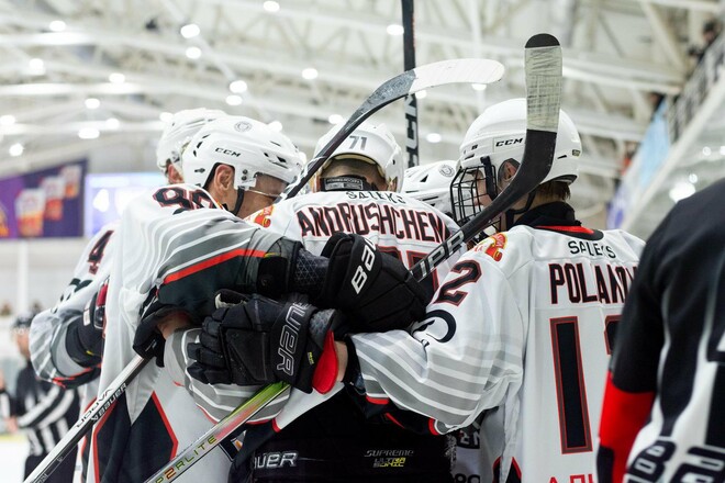 Шайби: 1:0 - Андрущенко (Крівошапкін, Геворкян), 04:06, 2:0 - Андрющенко (Безуглий, Брага), 04:54, 3:0 - Брага (Крівошапкін, Матусевич, більш.), 14:09, 4:0 - Матусевич (Материкін), 16:00, 5:0 - Геворкян (Середницький, Матусевич, більш.), 20:20, 6:0 - Абаджян (Попережай, Матусевич), 22:54, 7:0 - Андрущенко (Крівошапкін, Геворкян), 26:29, 8:0 - Андрущенко (Малик, Абаджян), 35:43, 9:0 - Андрущенко (Крівошапкін, Геворкян), 35:55, 9:1 - Древаль (Архипенко), 44:41, 10:1 - Брага (Середницький, Матусевич, більш.), 45:13, 11:1 - Попережай (Геворкян), 49:55, 12:1 - Крівошапкін, 57:44