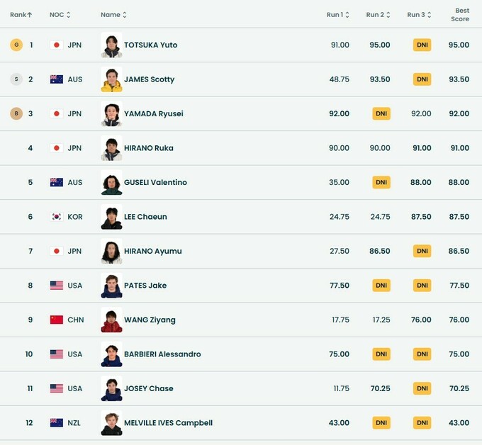 Золоту медаль ОІ-2026 здобув Юто Тоцука з Японії, який у найкращій спробі набрав 95,00 бала.