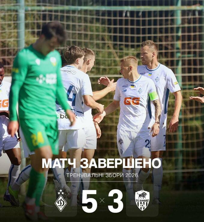 Динамо здобуло перемогу над Зімбру в результативному спарингу – 5:3. У суботу, 14 лютого, на Динамо чекає ще один контрольний матч проти латвійської РФШ. Гра відбудеться о 16:00 за київським часом.