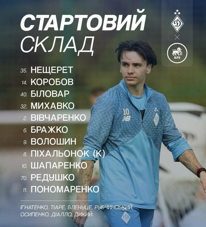 Стартовий склад Динамо на товариський матч проти РФШ
