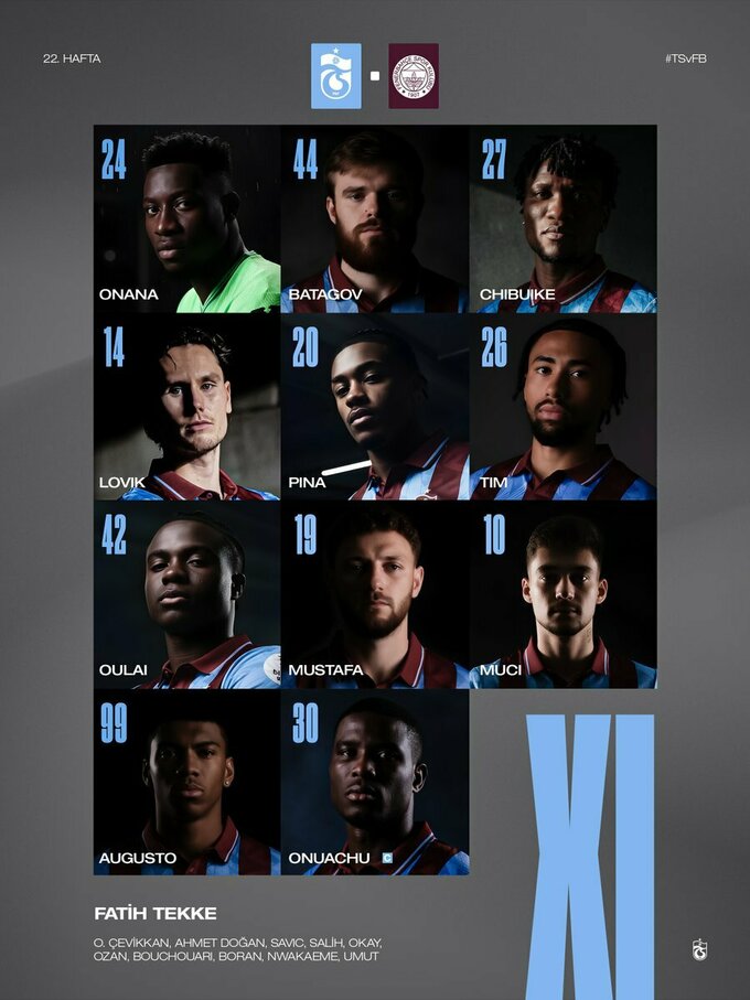 У стартовому складі господарів вийде український захисник Арсеній Батагов. Вінгер Олександр Зубков у заявку «Трабзонспора» на матч не потрапив, причиною стала травма.