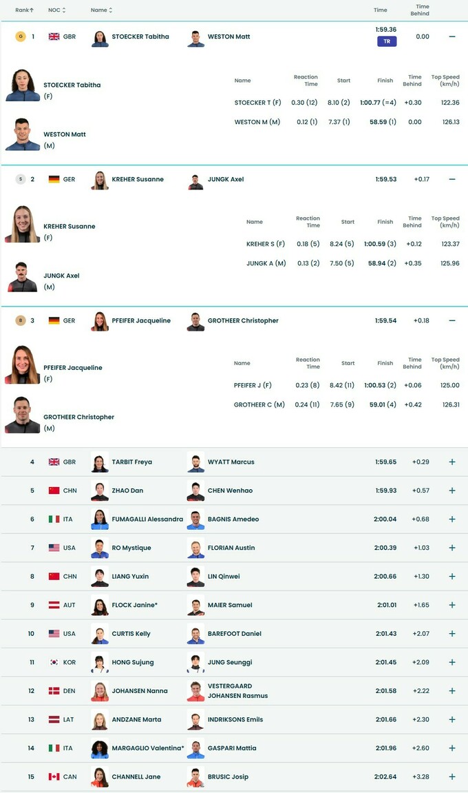 - 3. Жаклін Пфайфер / Крістоф Гротхер (Німеччина) – 1:59.54 (+0.18)